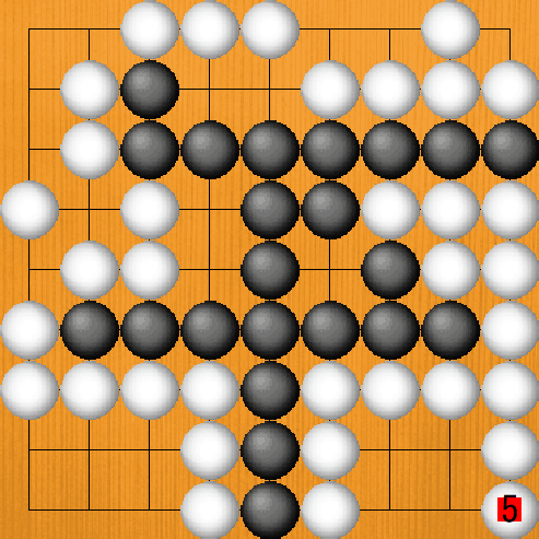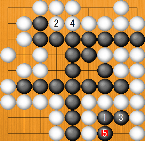 白1ツギに黒2、4と詰めて四目中手。白5に――